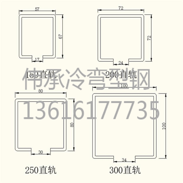 另有配套十字鏈條式輸送軌道的外翻邊軌道型鋼。如果有特殊需求,可做不銹鋼材質或鍍鋅板,厚度及長度也可根據客戶要求定制。